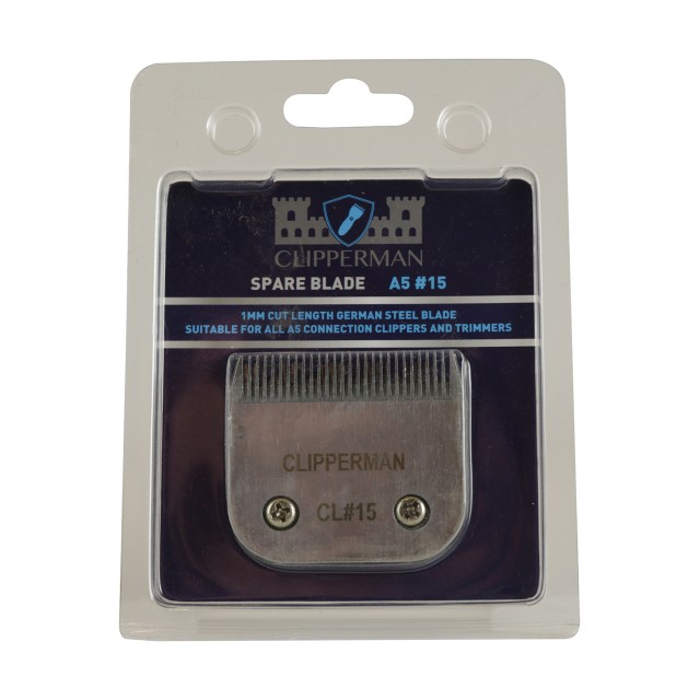 The Clipperman A5 #15 German Steel Blade Set is compatible with the Clipperman Crest and Joust trimmers.